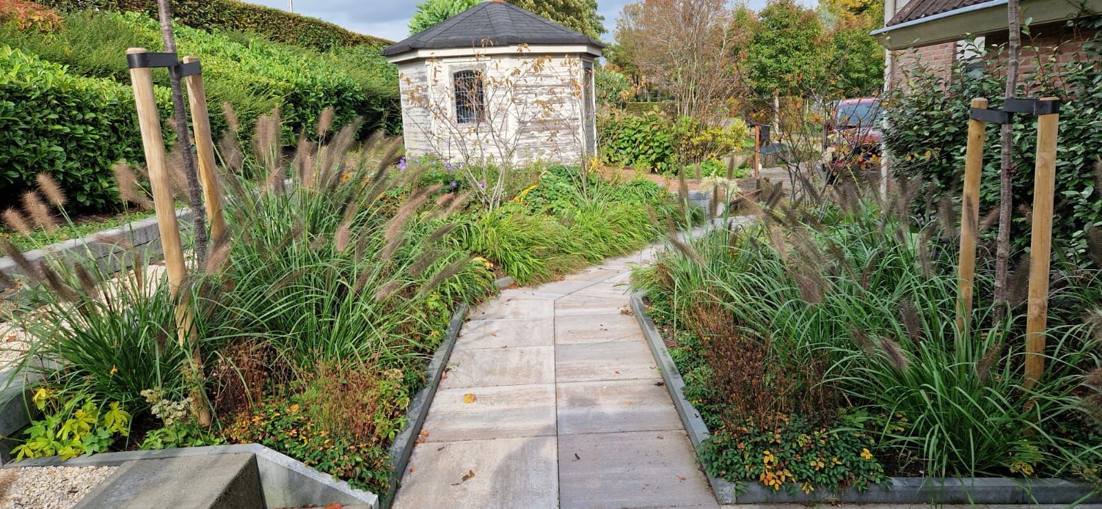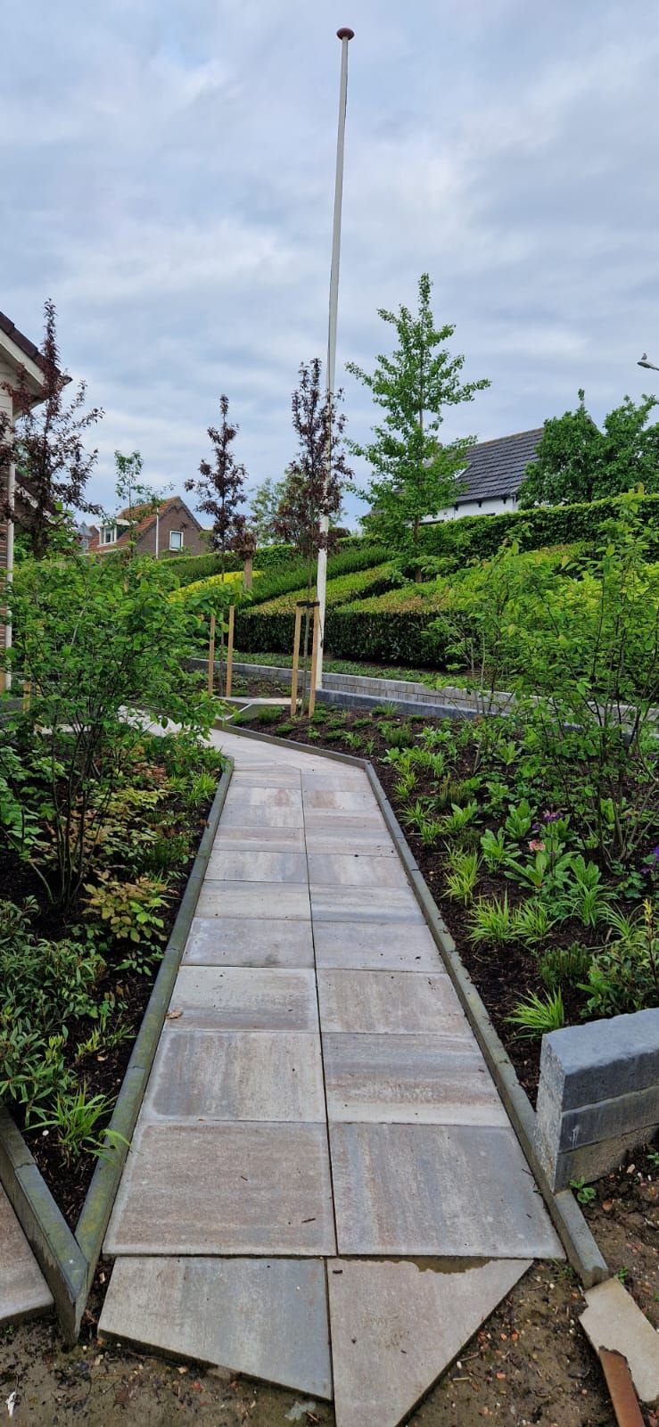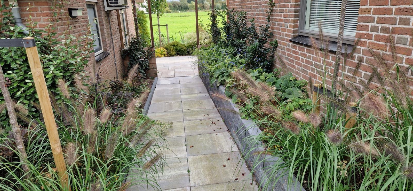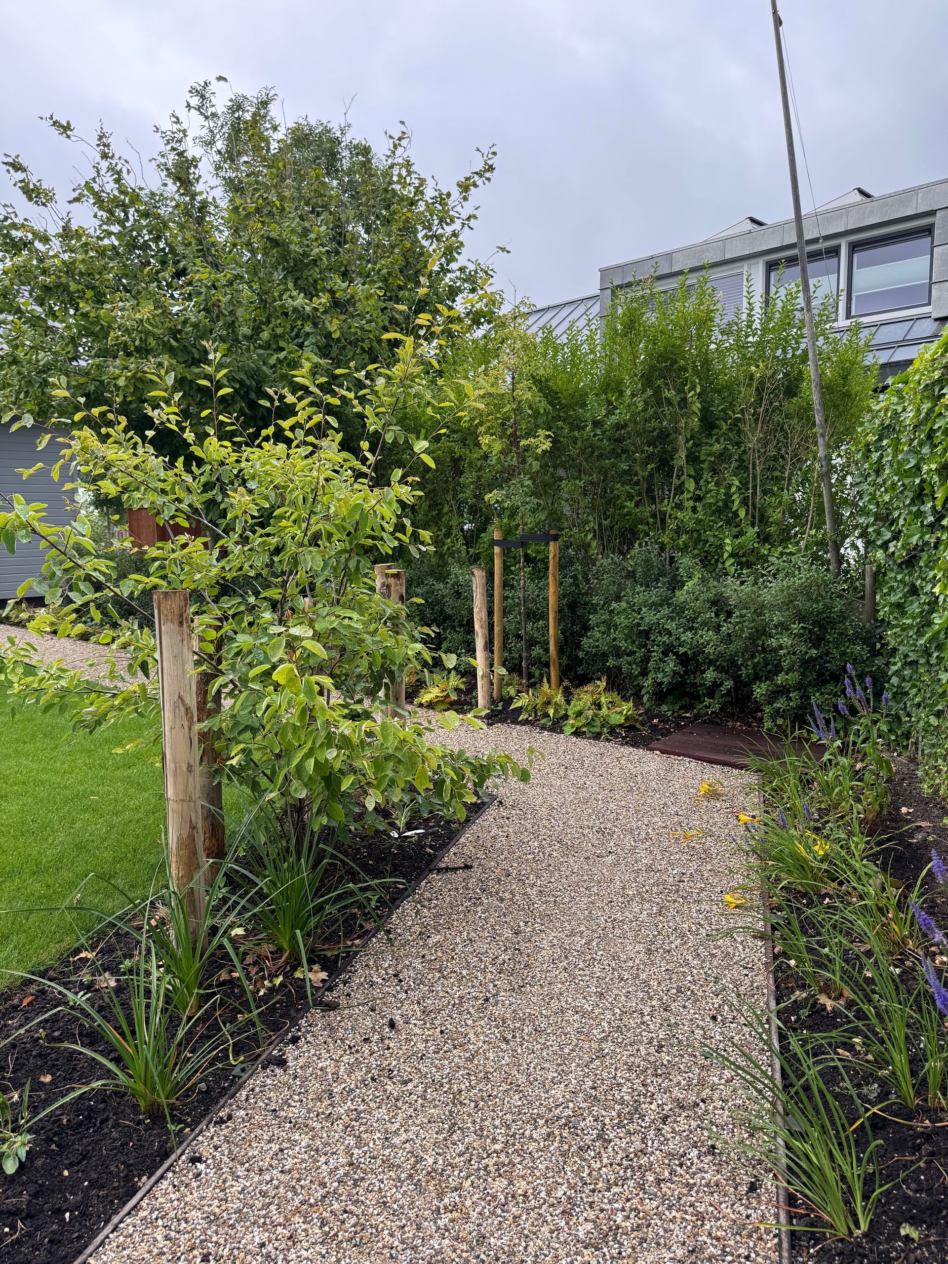 Realisatie van tuinontwerp in Nieuwbouwwijk in Alblasserwaard