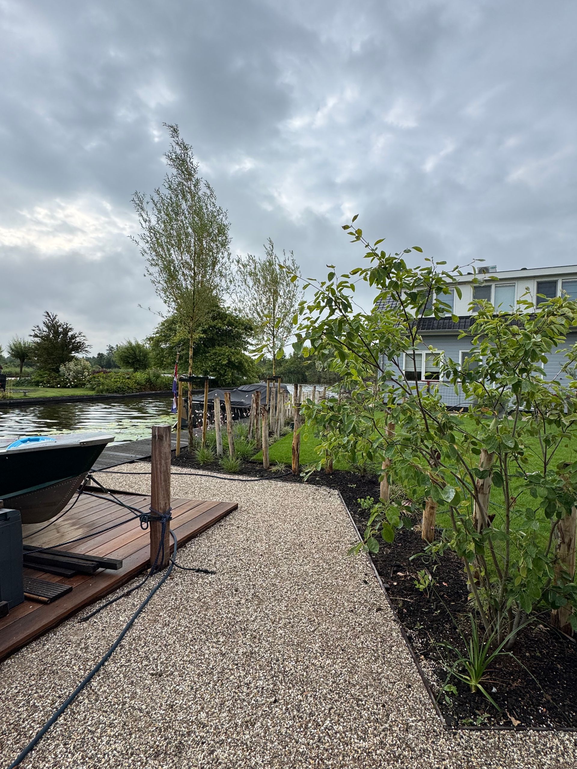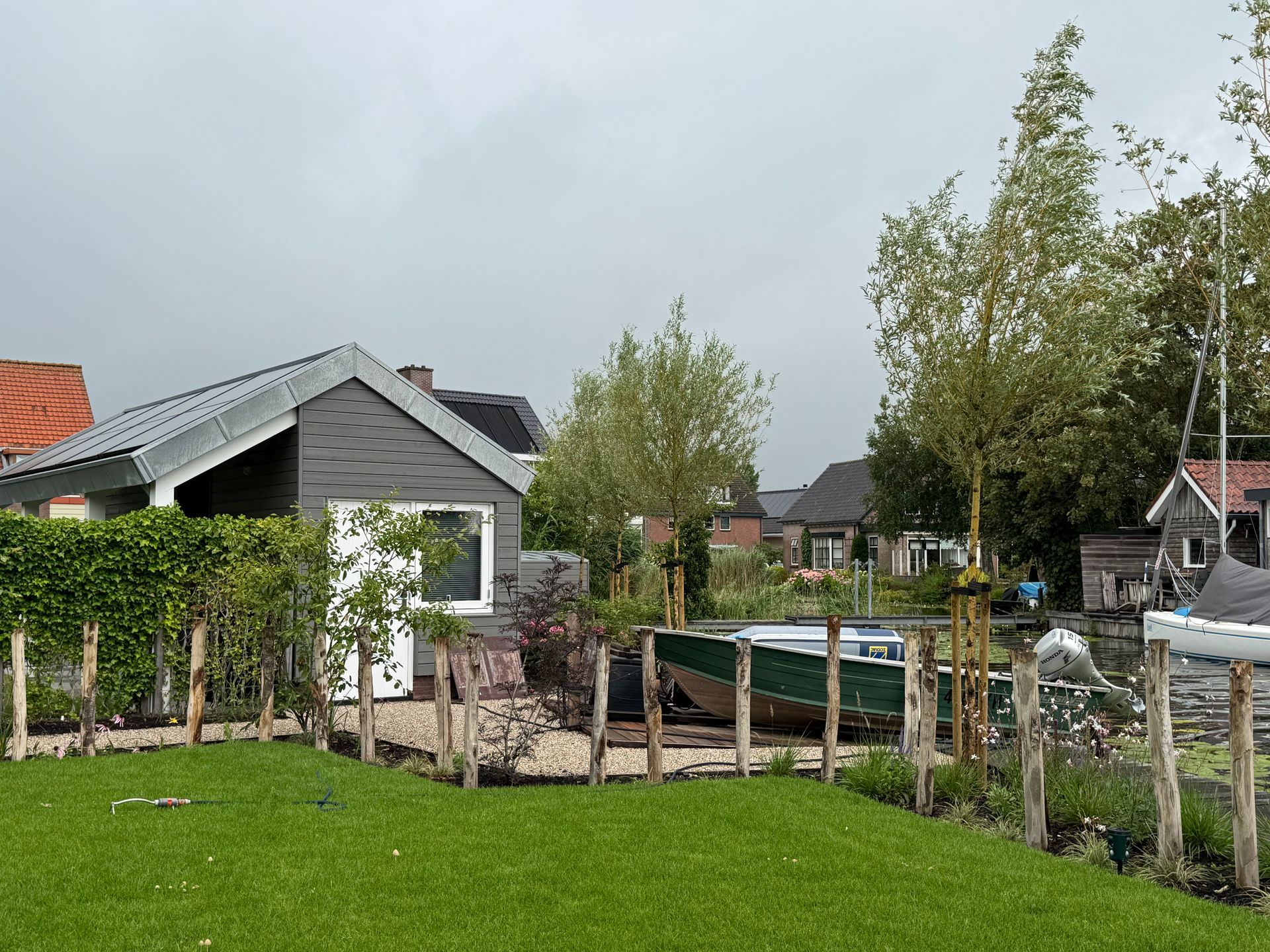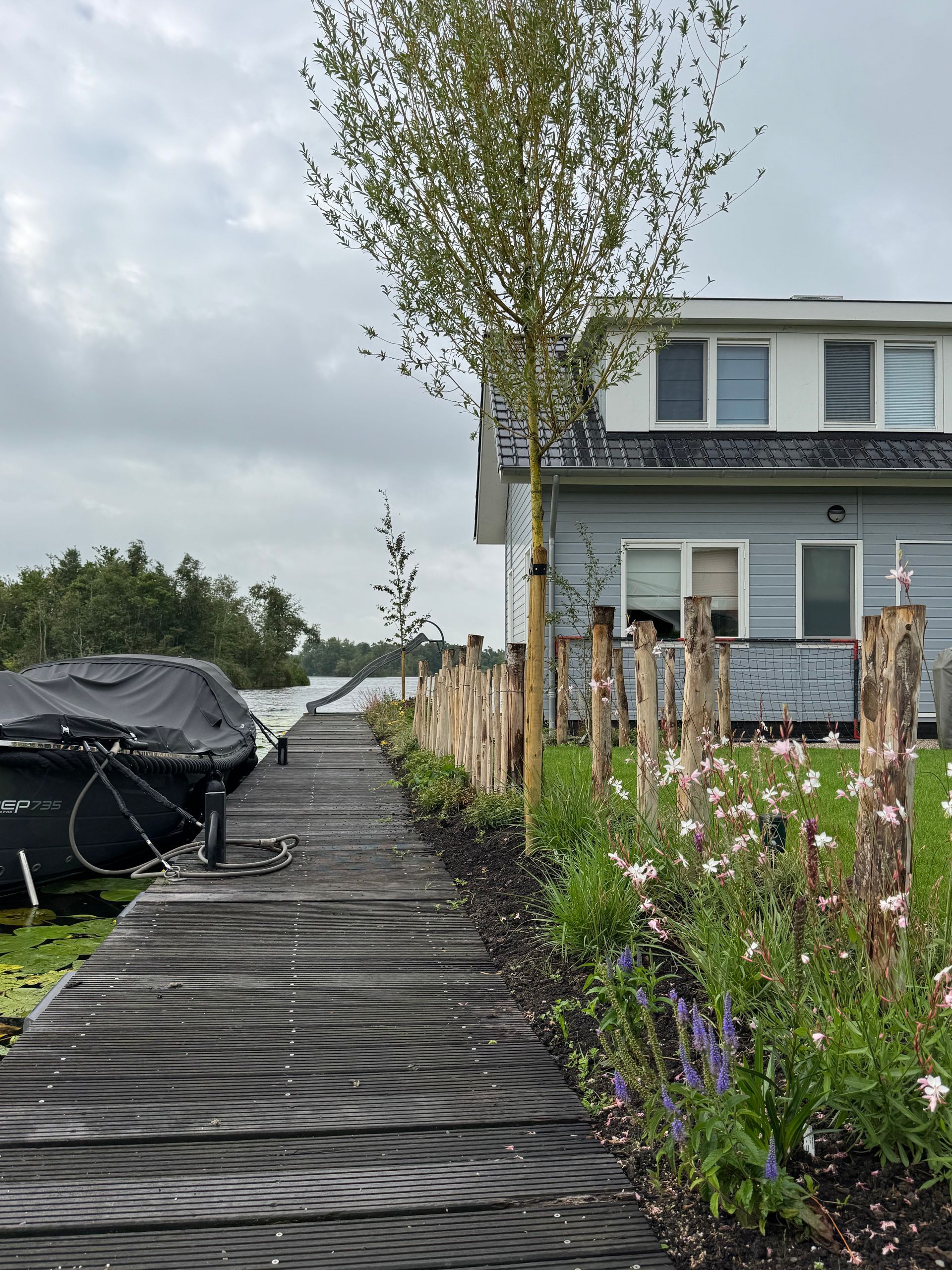 Realisatie van tuinontwerp rondom recreatiewoning aan de Nieuwkoopse plassen
